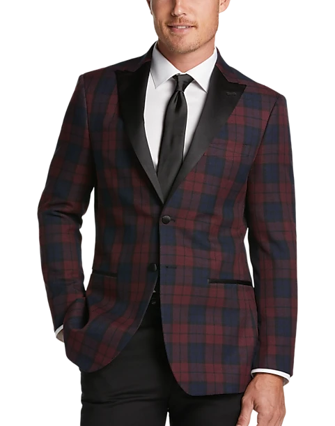 A traditional tartan plaid brings a classic look to this dinner jacket by After Hours. Perfect for holiday festivities and beyond, it’s styled with a Slim Fit for a lean, toned silhouette.