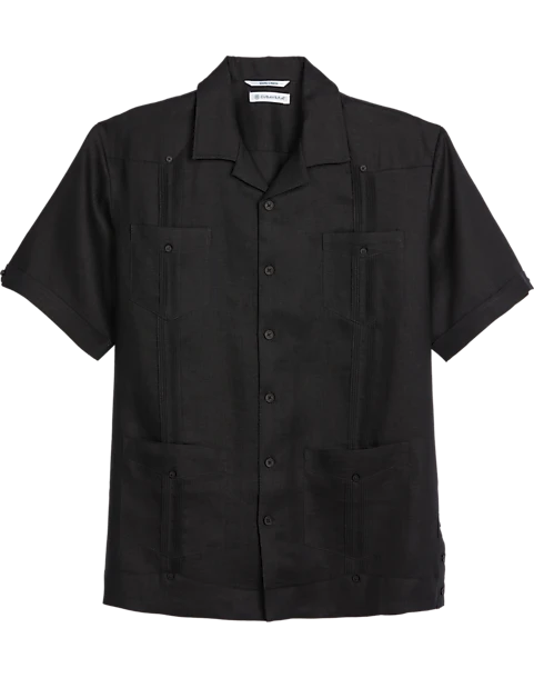 Cubavera Modern Fit Short Sleeve Linen Guayabera Shirt, Black