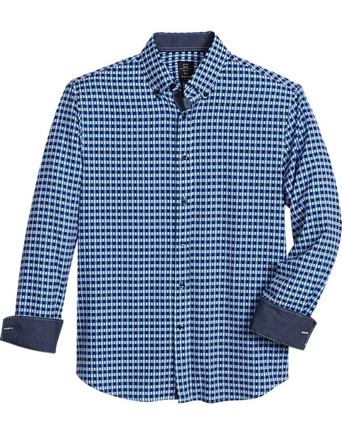 Michael Strahan Modern Fit Button-Down Collar Four-Way Stretch Sport Shirt, Medium Blue Geo Check