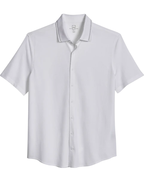 Michael Strahan Modern Fit Popcorn Stitch Short Sport Shirt, White