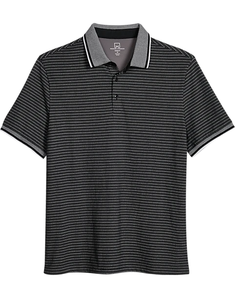 Michael Strahan Modern Fit Short Sleeve Polo, Black Stripe