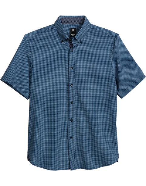 Cool comfort and effortless style are yours with this Michael Strahan short sleeve sport shirt. This handsome shirt features a performance blend fabric, button-down collar, and a unique 3-D check pattern.