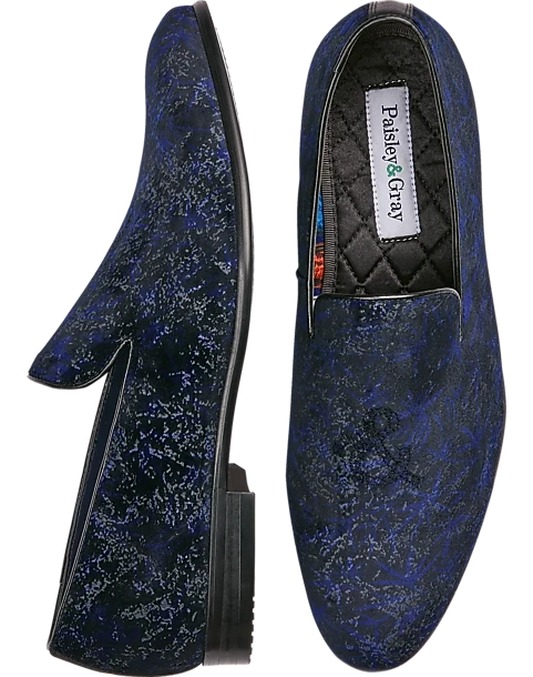 Paisley & Gray Party Bow Formal Loafers, Blue & Black Velvet Spackle