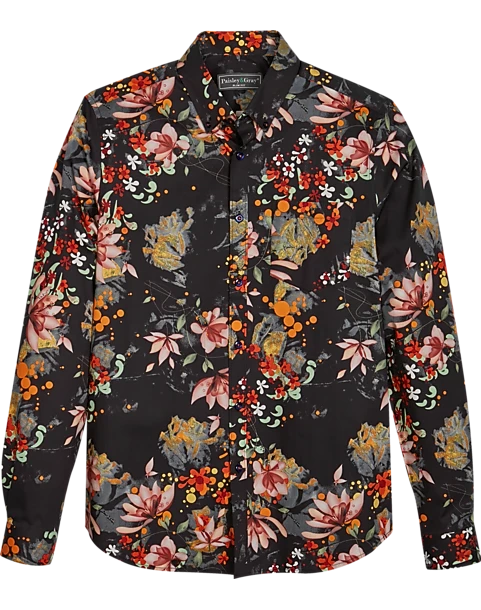 Paisley & Gray Slim Fit Spread Collar Sport Shirt, Black Paint Splatter Floral